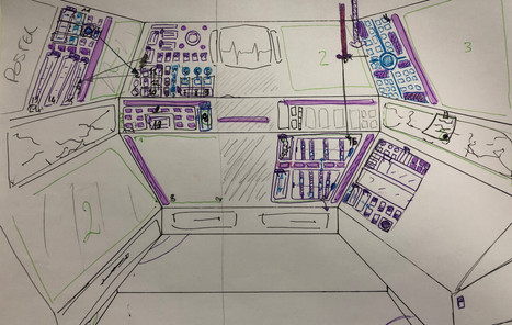 I started by creating two mood boards of what the atmosphere and a sketch of what the room should look like. As the team was pretty indecisive between the two, we chose to mix both atmospheres which gave the room this creepy and dark "futuristic" vibe with those luminous buttons and the rusty command panel.